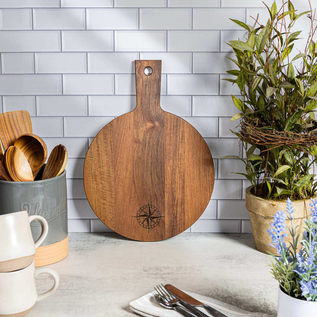 Chef's Collection Teak Round Serving Board - Compass - 12" Diameter